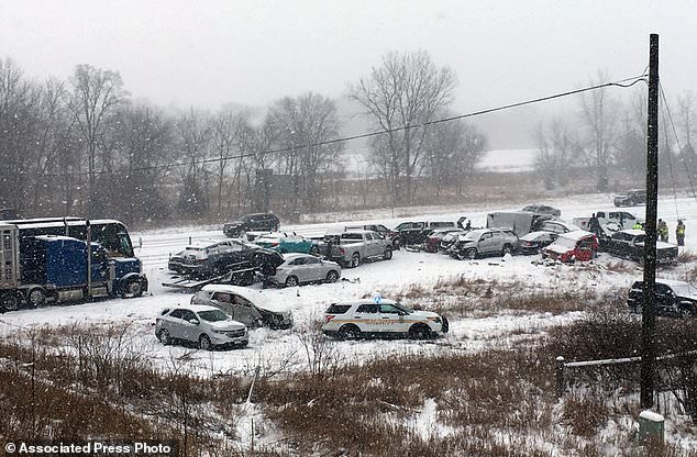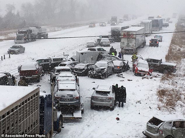 На обледеневшем шоссе в штате Миссури столкнулись свыше сотни автомобилей, пишет The Washington Post.