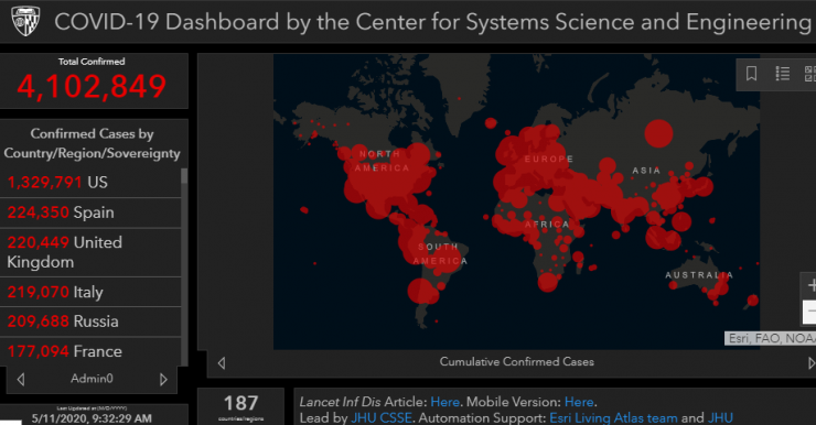 В мире 4 102 849 человек заразились коронавирусом, 282 719 из них умерли. Об этом свидетельствуют данные Университета Джонса Хопкинса, передает Tengrinews.kz.
