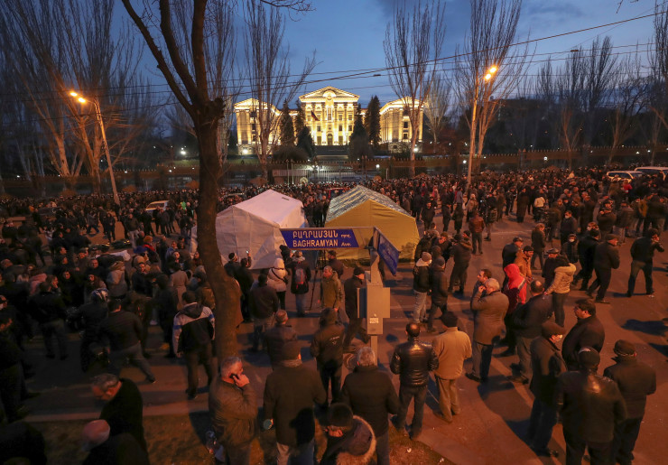 Сегодня, 26 февраля, акции протеста продолжаются в Ереване. По данным СМИ, оппозиция собирается у здания парламента в Ереване. Построен палаточный городок.