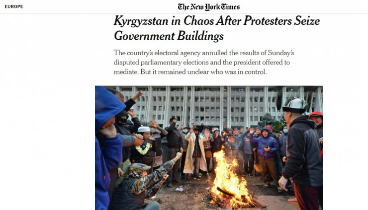 The New York Times күнделікті АҚШ басылымы көршілес елдегі жағдай бойынша "Наразылық білдірушілер үкіметтік ғимараттарды басып алғаннан кейін Қырғызстанда хаос басталды" атты тақырыппен мақала дайындаған.