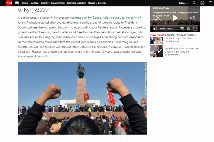 Америкалық CNN басылымы да Қырғыз еліндегі жағдайға назар аударып, 6 қазанда болған маңызды оқиғаларға шолу жасаған.