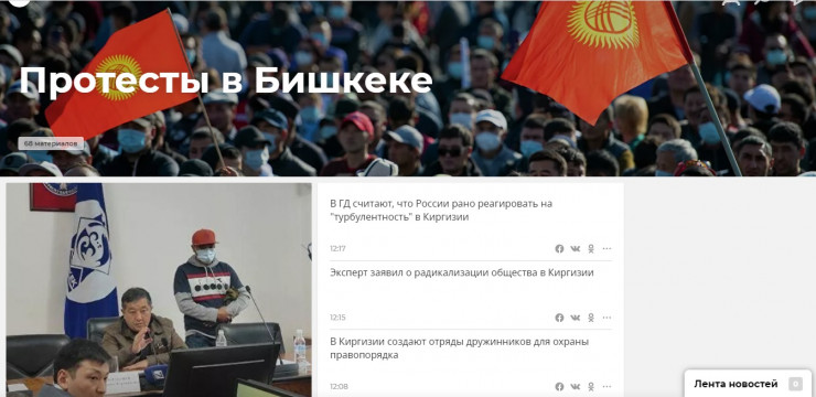 Ресейлік РИА Новости басылымы Бішкектегі митингіге байланысты бір айдар арнаған. Ол жерде Қырғызстандағы жағдай бойынша 68 материал жазылған.