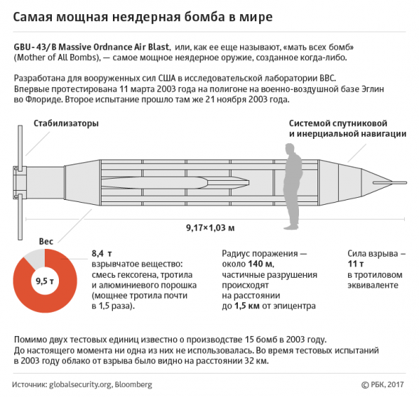 При этом, как пишет американская газета The New York Times, в результате удара "супербомбы" в Афганистане были уничтожены 82 боевика ДАИШ. Издание приводит данные представителя губернатора провинции Нангархар.