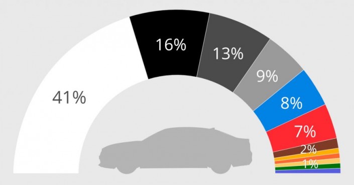 Самые популярные автомобильные цвета в мире