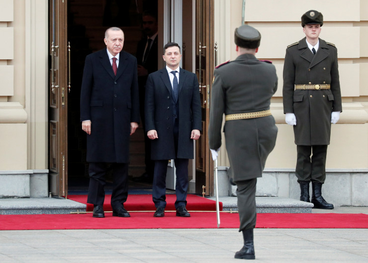 Президент Турции Реджеп Тайип Эрдоган во время официального визита в Киев 3 февраля поприветствовал почетный караул словами "Слава Украине!". В ответ украинские военные произнесли: "Героям Слава!". Соответствующее видео опубликовано на странице президента Украины в Facebook.