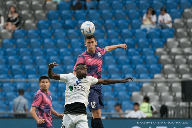 37' - Опасный удар из-за пределов штрафной со стороны футболиста QJ League. Однако Нурлыбек Мусылманбек все контролировал, и мяч пролетел рядом со штангой
