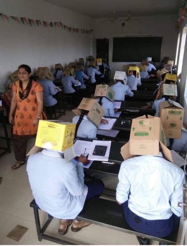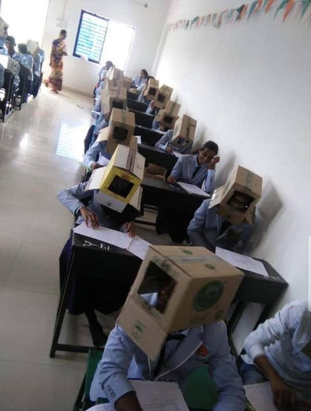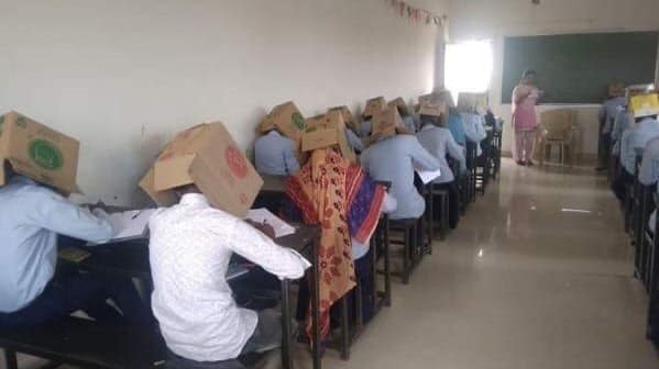 Индийским студентам на время экзамена надели на головы картонные коробки. В Сети появились фото, быстро ставшие вирусными, передает Tengrinews.kz