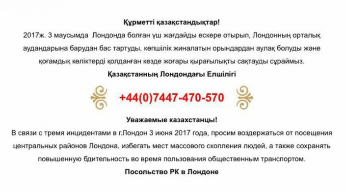 Он напомнил, что посольство Казахстана в Великобритании продолжает проверять информацию, открыта "горячая линия".