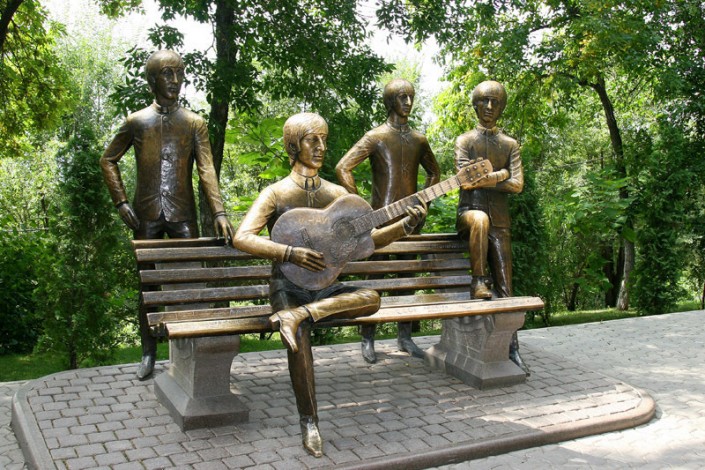 Скульптура группы The Beatles появилась в Алматы в 2007 году. Памятник сделан из бронзы. Три музыканта из знаменитой ливерпульской четверки изображены стоя. Это Джордж Харрисон, Ринго Старр и Пол Маккартни. На скамейке сидит Джон Леннон с гитарой в руках. Памятник расположен на горе развлекательного парка "Кок-Тобе".