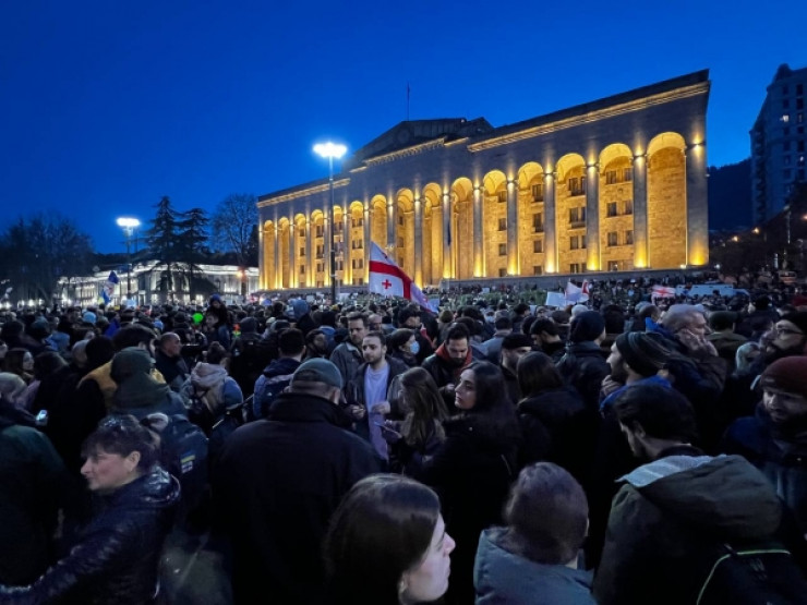 Тысячи людей вновь собрались у здания парламента в Тбилиси. К законодательному органу пришли студенты, участницы "Марша женщин", рядовые граждане, а также представители оппозиции.