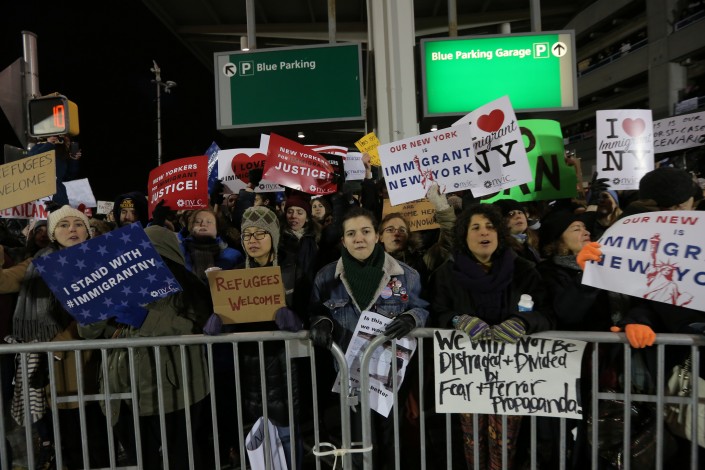 После того как 28 января американские власти начали исполнять распоряжение Трампа, в крупнейших аэропортах США начались акции протеста против указа. С утра субботы в аэропортах Нью-Йорка, Сан-Франциско, Чикаго, Сиэтла и других крупнейших городов проходят митинги в поддержку мигрантов. Люди приезжают к аэропортам, требуя признать действия президента антиконституционными. По всей стране в акциях протеста участвуют тысячи человек, сообщает Meduza.