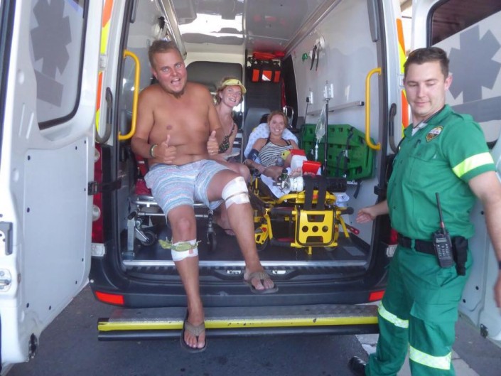В результате падения девушка получила перелом ноги в двух местах, ей была проведена операция - вставлены титановая пластина и 12 винтов. Два дня отпуска девушка провела в больнице, но, невзирая на травму, планирует продолжать путешествие. Гражданами какой страны являются молодожены, не сообщается.