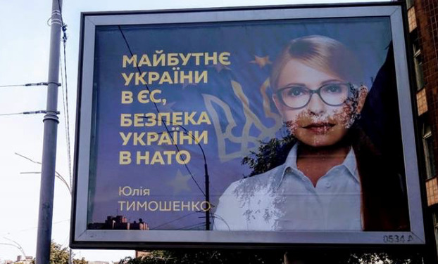 Главного конкурента Петра Порошенко Юлию Тимошенко обвинили в плагиате, поскольку на одном из билбордов кандидат скопировала лозунг действующего президента: "Будущее Украины в ЕС, безопасность Украины в НАТО".
