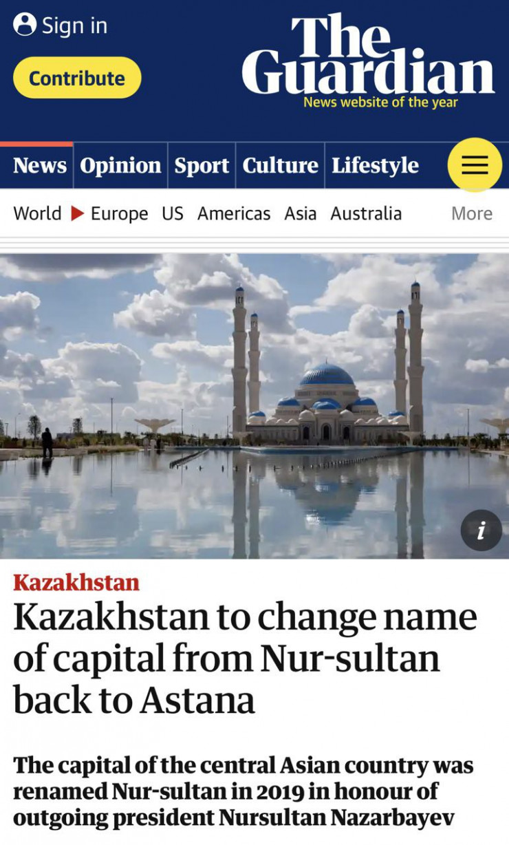 Что пишут мировые СМИ про переименование столицы Казахстана