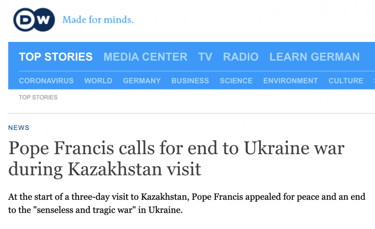На порталах Euronews и Deutsche Welle подчеркнули слова понтифика о конфликте в Украине. Кроме того, автор статьи сообщил о встрече Папы Римского с Токаевым и его обращении к дипломатическому корпусу и представителям гражданского общества страны.