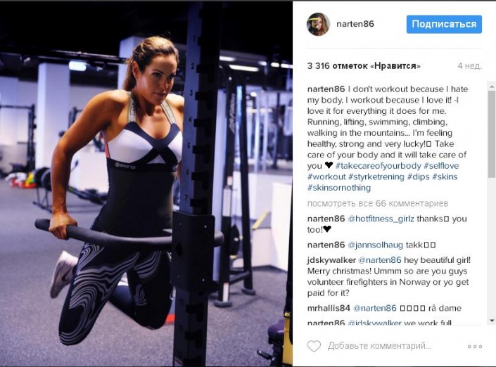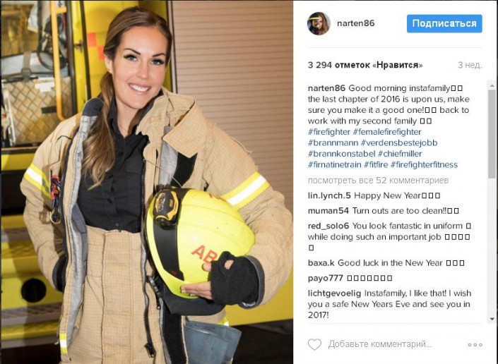 Самой привлекательной пожарной в мире называют норвежку Гунн Нартен (Gunn Narten) ее поклонники в Instagram, пишет The Daily Mail.