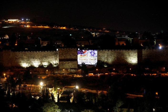 Власти Иерусалима в знак благодарности уже разместили на стенах исторического центра световые изображения флагов США и Израиля. "В знак благодарности за мужественную дружбу между американским народом и народом Израиля мы решили спроецировать флаги двух стран на стены иерусалимского Старого города - символа прочной связи еврейского народа с Иерусалимом на протяжении трех тысяч лет", - цитируется в сообщении мэр города Нир Баркат.