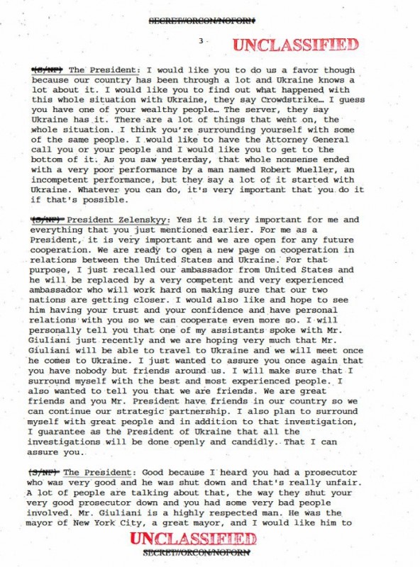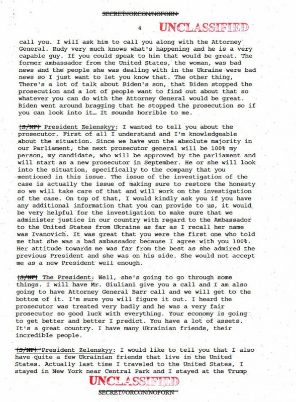 Трамп, в частности, просил Зеленского поговорить с адвокатом Рудольфом Джулиани и генпрокурором США Уильямом Барром по поводу ситуации вокруг сына Джо Байдена, который получил очень высокооплачиваемую должность в Украине.