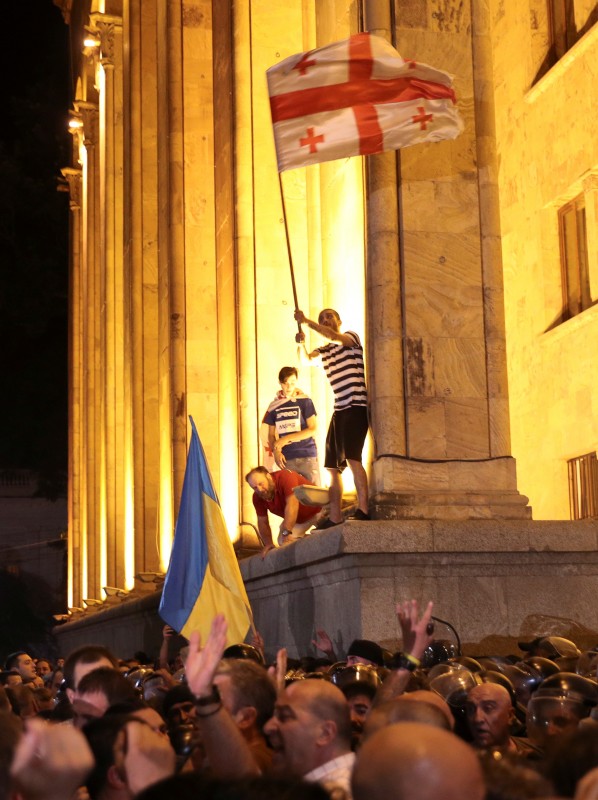 Вскоре после этого небольшие группы членов неправительственных организаций и их сторонники начали шествие по центральным улицам Тбилиси, остановившись у гостиницы, где находился российский депутат. Митингующие начали закидывать здание яйцами и бутылками, требуя от делегатов немедленно покинуть страну. Участники акции договорились возобновить выступление вечером, к ним присоединились оппозиционные партии и их сторонники.