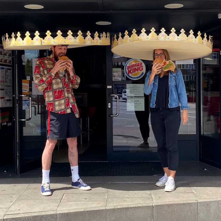 Ал дүние жүзіне танымал фаст-фуд желісінің Германиядағы бөлімшесі келушілер арақашықтықты сақтауы үшін "тәж" таратқан. Арнайы "бас киім" келушілердің 1,5-2 метр арақашықтықты сақтауына мүмкіндік береді.