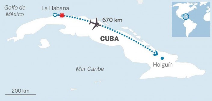 Самолет летел из Гаваны в Ольгин. Он упал через несколько минут после взлета из аэропорта Гаваны. Лайнер рухнул на территорию, занятую сельскохозяйственными посадками.