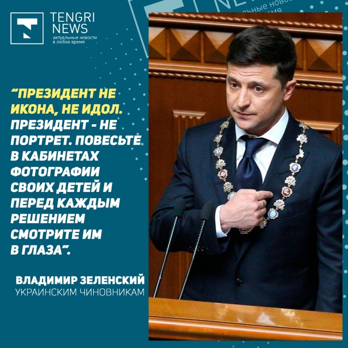 Я думаю, что люди это оценят. И мое избрание доказывает: граждане устали от опытных системных, надутых политиков, которые за 28 лет создали страну возможностей: возможностей откатов, потоков и дерибана. Мы построим страну других возможностей, где все равны перед законом, где есть честные и прозрачные правила игры, одни для всех. А для этого к власти должны прийти люди, которые будут служить народу. Я очень хочу, чтобы в ваших кабинетах не было моих изображений. Не было, пожалуйста, моих портретов. Потому что президент - не икона, не идол. Президент - это не портрет. Повесьте туда фотографии своих детей. И перед каждым решением смотрите им в глаза.