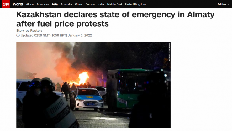 Тағы бір америкалық басылым CNN де елдегі оқиға туралы жазған. Басылым Алматыдағы жағдайға шолу жасап, елдегі төтенше жағдай туралы қысқаша ақпар беріп өткен. Сондай-ақ, басылымда жарияланған материалда ел Президенті Қасым-Жомарт Тоқаевтың видеоүндеуіндегі сөзі келтірілген.