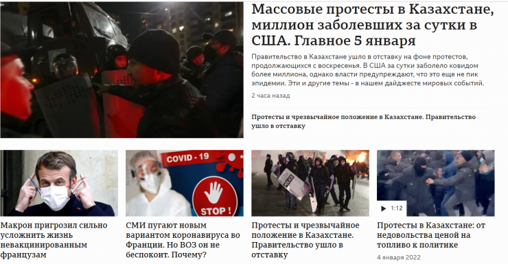 Ұлыбританиялық ВВС-дің ресейлік басылымы Қазақстандағы наразылық шаралары туралы бірнеше материал жазған. Оның ішінде, елдегі төтенше жағдай мен үкіметтің отставкаға кетуі де бар. Сонымен қатар, басылым Атырау, Ақтау, Нұр-Сұлтан және Алматыдағы ахуалға шолу жасап, видео жариялаған.