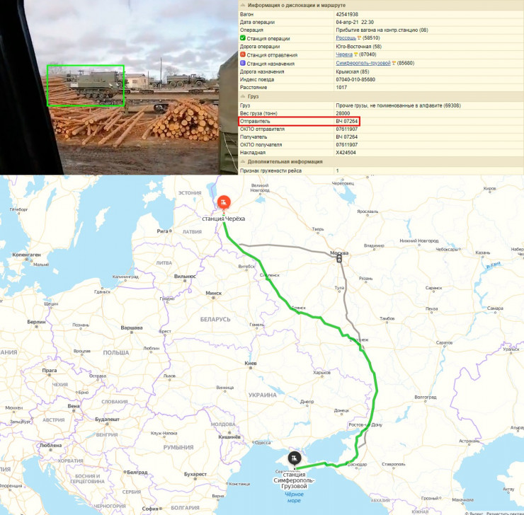 "В TikTok было опубликовано видео, где видна железнодорожная платформа с самоходной артиллерийской установкой "Нона-С", которая стоит на вооружении воздушно-десантных войск. Проверив номер платформы с помощью сервиса gdevagon, журналисты установили, что она следует со станции Череха в Псковской области на станцию Симферополь-грузовой", - говорится в публикации на сайте Conflict Intelligence Team.