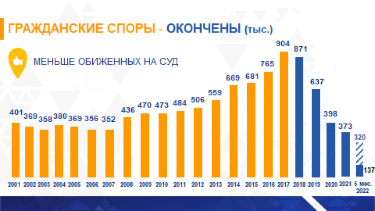 Это убавило споры: с 900 тысяч до 320 - втрое меньше за 4 года!