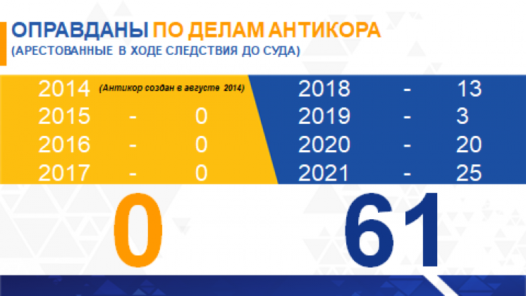 По делам Антикора с 2014 по 2017 год не был оправдан ни один арестованный в ходе следствия.