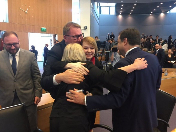 "Почитайте вялое и беззубое заявление МИД РФ относительно решения Международного трибунала по морскому праву и поймете масштаб нашей сегодняшней победы", - написал в Twitter глава МИД Украины Павел Климкин. Министр прикрепил к посту фотографию обнимающихся коллег и пояснил, что так выглядит "дипломатическое счастье".