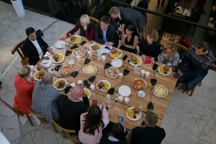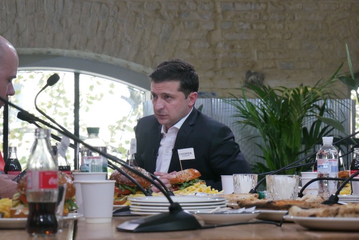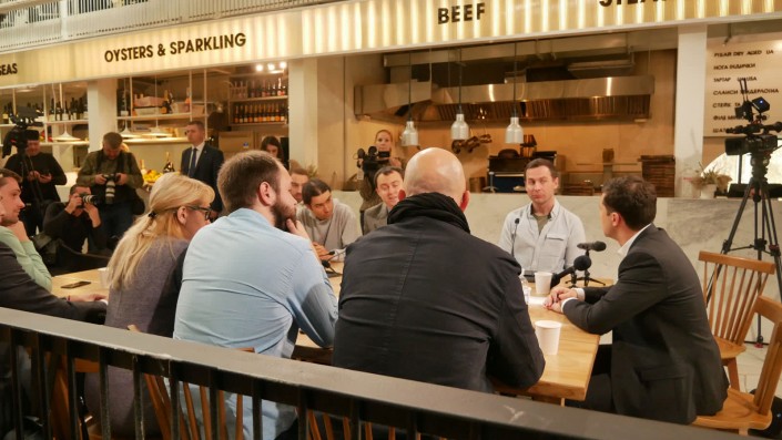 Пресс-марафон прошел на фудкорте, где Зеленский практически без перерывов на еду группами принимал представителей СМИ за столом. Вопросы главе государства задали более сотни украинских и зарубежных журналистов.