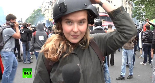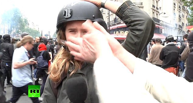 "Участники акции протеста в Париже против трудовой реформы пытались помешать работе корреспондента RT Анны Барановой. Один из митингующих подошел к журналистке во время прямого включения и ударил по шлему. По данным профсоюзов, на улицы французской столицы вышло более 50 тысяч человек. В ходе демонстраций произошли стычки между протестующими и сотрудниками правоохранительных органов", - говорится в описании к ролику.