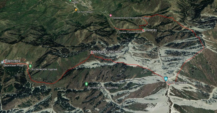Описание: Бутаковка - перевал Лесной - пик Букреева - турбаза "Алматау"